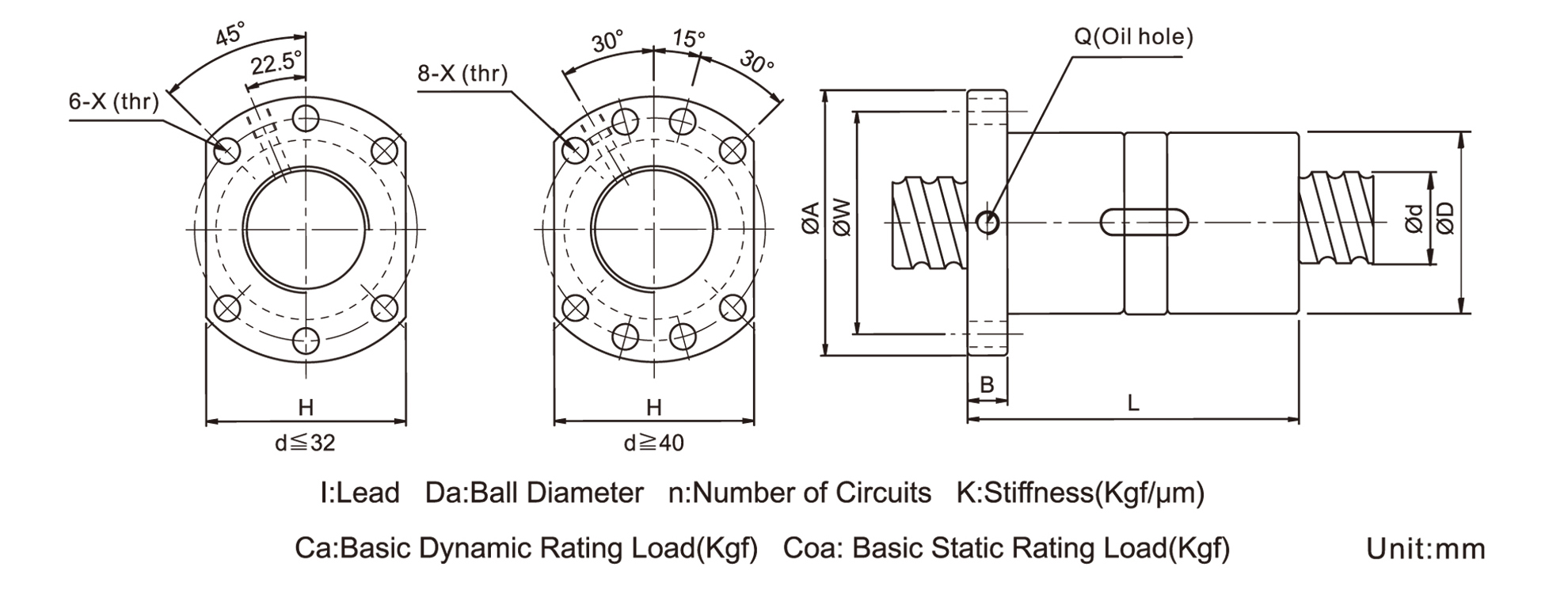 D | A | B | L | W | H | X | Q | n | Ca(kgf) | Coa(kgf) | |||||