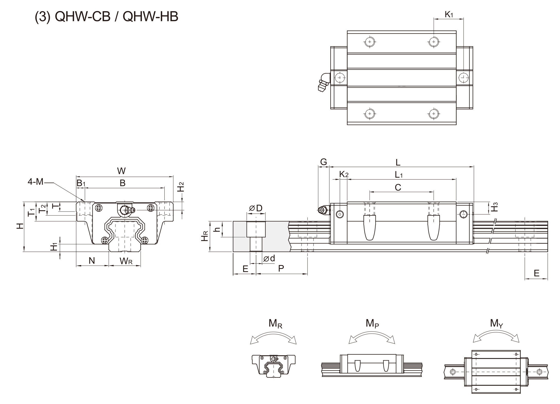 H | H1 | N | W | B | B1 | C | L1 | L | K1 | K2 | G | M | T | T1 | T2 | H2 | H3 | WR | HR | D | h | d | P | E | (mm) | C(kN) | C0(kN) | ||||||