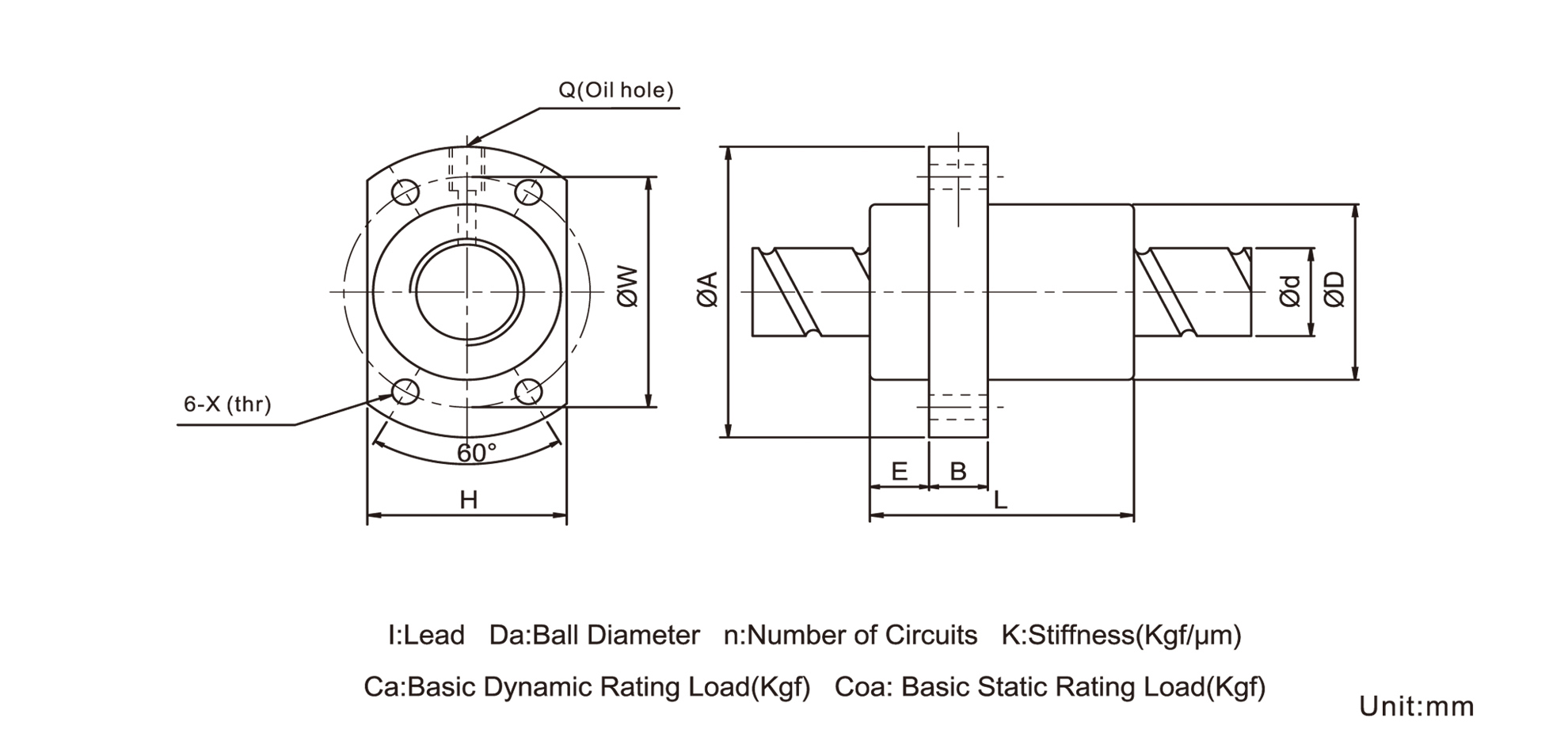 | Model No. | d | l | Da | Dimension | Load Rating | ||||||||||